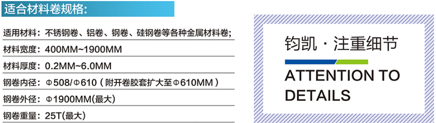 本設備的工作流程:本設備是將鋼板(各種金屬材料卷)通過高速精密縱剪加工成需要寬度的專用剪切設備。本設備的主要工作主機由開卷機、精密圓盤式刀座、張力產生站、收卷機等四個主要機構構成,中間輔以收紙、運料、夾送、板頭剪床、緩沖、引導、覆膜、收卷廢邊、分卷剪床、出料等裝置。