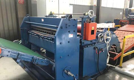 本設備的工作流程:本設備是將鋼板(各種金屬材料卷)通過整平后、定尺橫剪的方式把鋼板加工成客戶需要尺寸的專用剪切設備。該生產線的主要設備由收紙機、液壓上料小車、開卷機、接料鏟頭、整平主機、渡橋、NC定尺送料機、靜電覆紙機構、高速剪床、集料等機構構成,中間輔以運料、緩沖、引導、輸送、出料等裝置。
