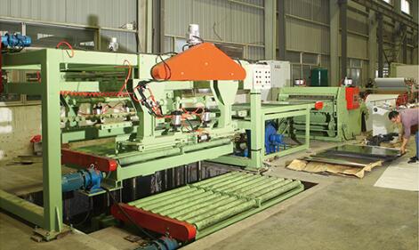 本設備的工作流程:本設備是將鋼板(各種金屬材料卷)通過整平后、定尺橫剪的方式把鋼板加工成客戶需要尺寸的專用剪切設備。該生產(chǎn)線的主要設備由收紙機、液壓上料小車、開卷機、接料鏟頭、整平主機、渡橋、NC定尺送料機、靜電覆紙機構、高速剪床、集料等機構構成,中間輔以運料、緩沖、引導、輸送、出料等裝置。